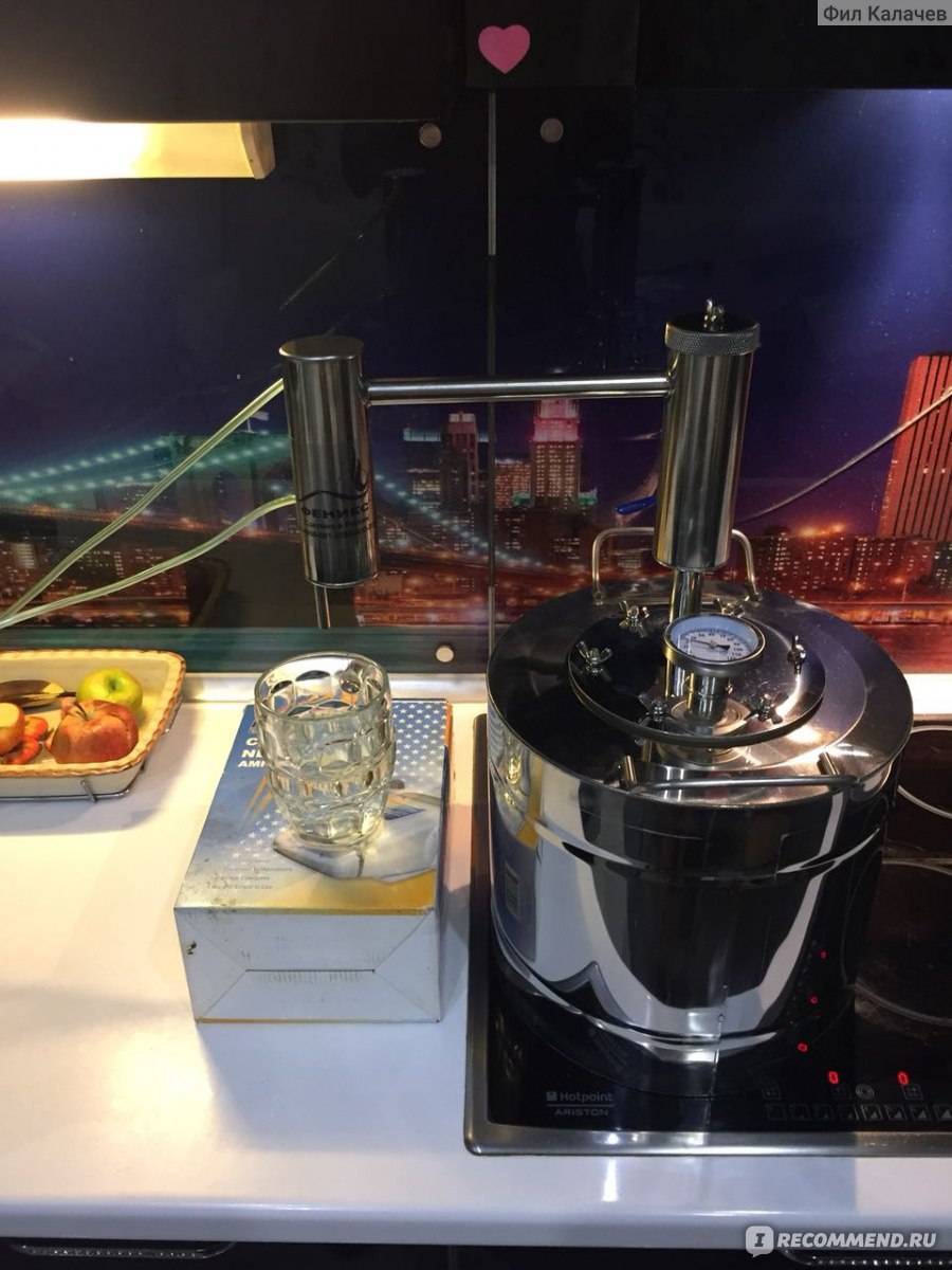 Аппарат оборудован эффективным проточным холодильником и термометром над дефлегматором. В комплект поставки входит инструкция, книга рецептов и гарантийный талон. «Элегант» в сувенирной коробке может стать неплохим подарком к знаменательной дате друзьям или добрым знакомым.