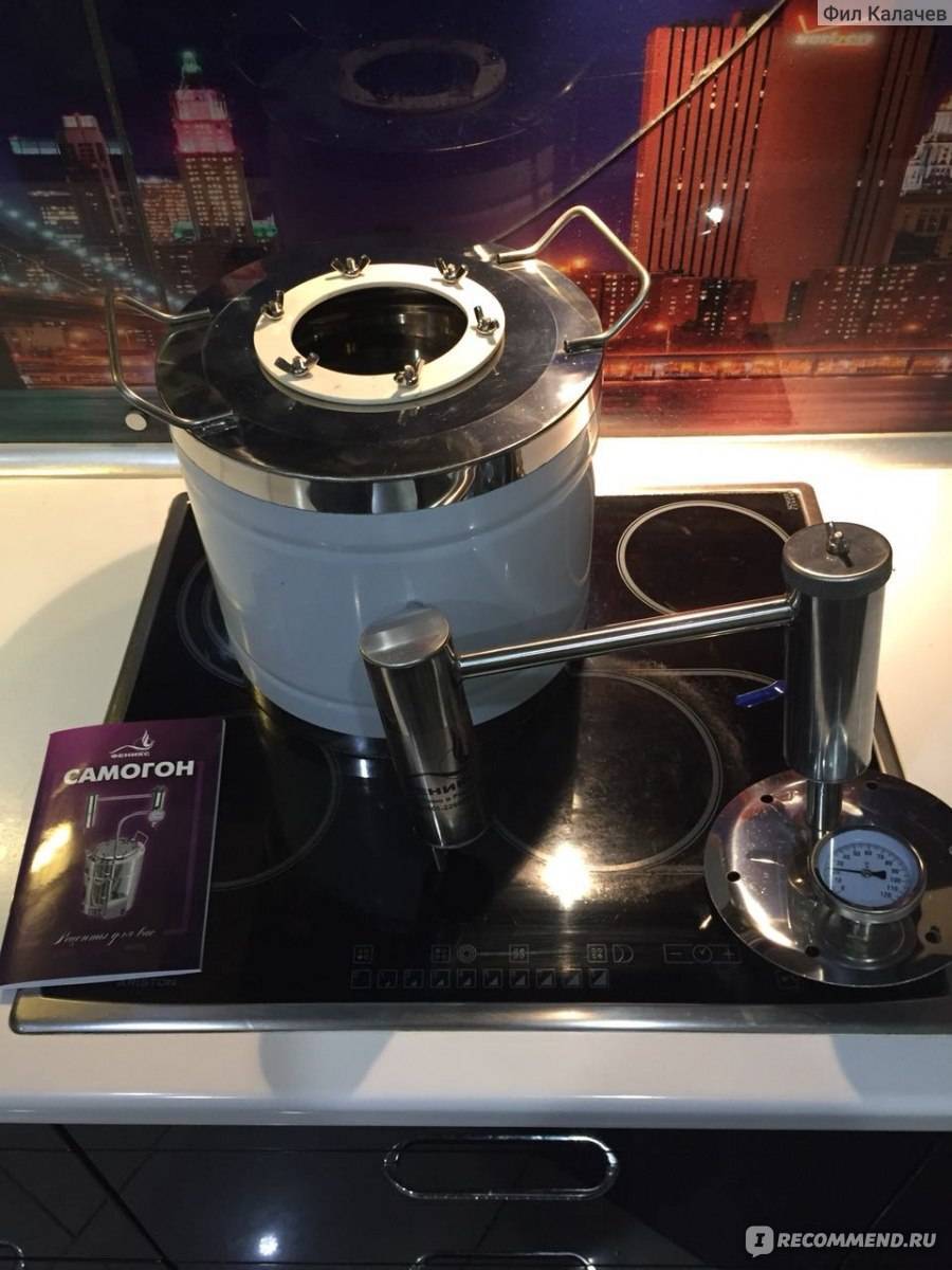 Цена – 11400 р, а если захотите емкость на 35 литров – то заплатите 15900р. Его универсальность и уникальность – в том, чтобы получать у себя на кухне как дистиллят, фруктовые водки, коньячные спирты, так и ректификат – чистый и крепкий, лишенный специфического «самогонного» запаха. При первом перегоне методом дистилляции скорость получения продукта – до 3 литров за час работы, при вторичной перегонке – уже до 6 литров за час.