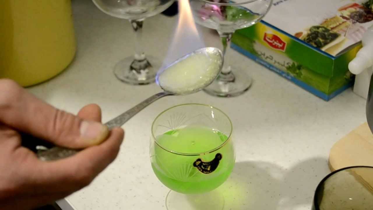 Для этого способа нужен сироп, который получают, смешивая 2/4 стакана воды и 1/4 сахара. Полученный сироп выливается в 1/4 абсента.