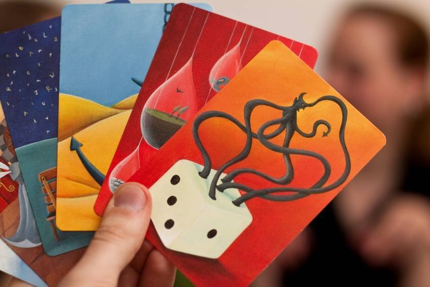 «Диксит». Невероятно красивая французская игра с сюрреалистичными иллюстрациями. Игроки по очереди дают ассоциации на картинки и должны стремиться к тому, чтобы отгадывали как можно меньше участников (но хотя бы один). Счёт идёт на очки, но фишка не в победе, а в самом процессе. У игры есть пиратский клон — «Имаджинариум».