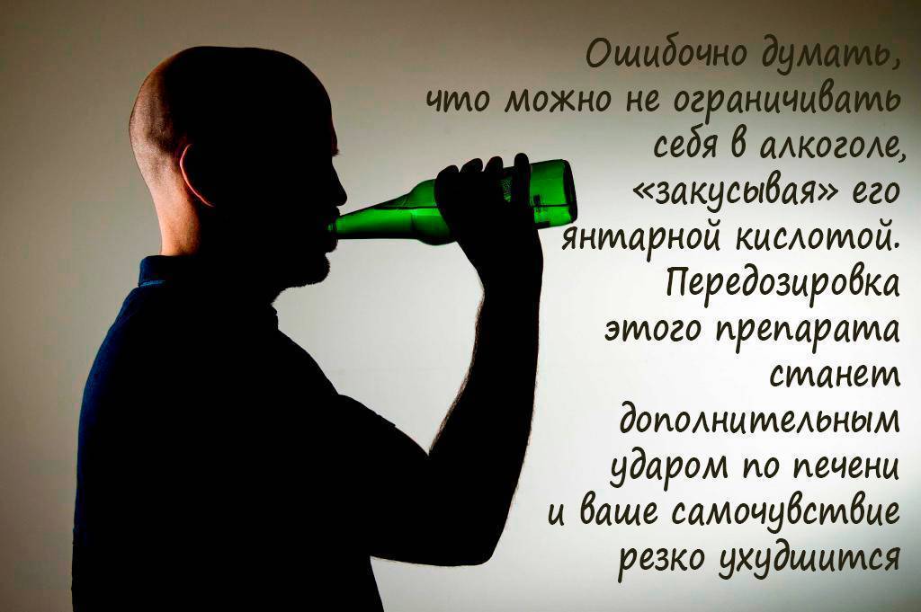 Хотя янтарная кислота и способна ускорять процесс расщепления ацетальдегидов и других опасных веществ, не стоит возносить ее как панацею от всех болезней, она тоже может навредить при неправильном применении. И ошибочно думать так же, что можно не ограничивать себя в алкоголе, выпив перед застольем пару таблеток янтарной кислоты и положив под подушку еще пластиночку на утро. Главным способом предотвратить похмелье остается умеренное потребление спиртных напитков. И никаких волшебных средств от бодуна пока не существует.