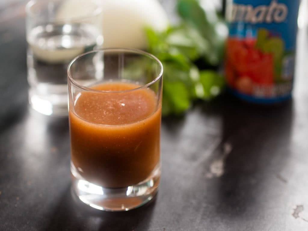 - По собственному вкусу в напиток добавляют острый томатный соус и соль, после чего тщательно перемешивают;