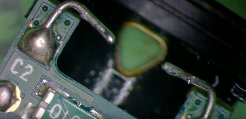- отошли контакты, идущие от микросхемы к аккумулятору, вследствие чего электронная плата не получает питание и ЭС не включается (в данном случае следует перепаять контакты).