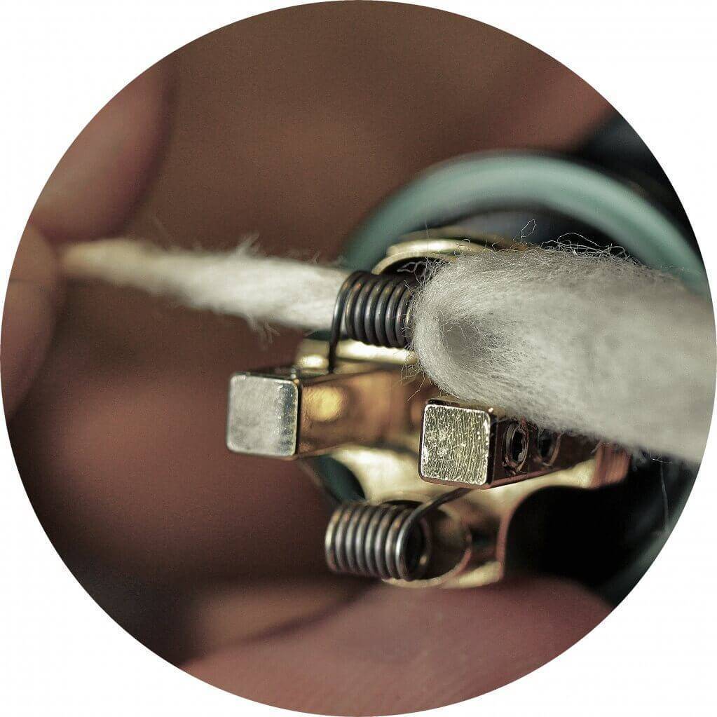 - Используйте только специальную вату для вейпинга в качестве фитиля, не рекомендуем использовать медицинскую и синтетическую вату.