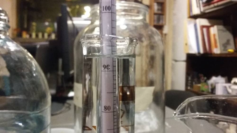 Процедура разбавления сырья осуществляется дробно, т.е. вода доливается постепенно. Во время процесса необходимо каждый раз измерять крепость самогона, с чем справится спиртометр. А чтобы знать, в каких пропорциях самогон разводится водой, нужно обратиться к таблице Фертмана или онлайн-калькулятору.