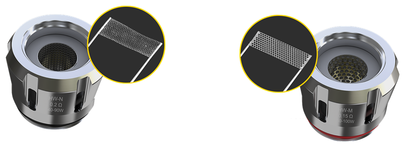 На момент публикации компания Eleaf представила два испарителя: HW-N c сопротивлением 0.2 Ом и HW-M с сопротивлением 0.15 Ом. Материал спирали — кантал.