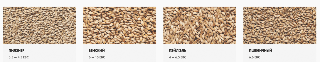 - мюнхенский солод трех типов (с цветностью от 12 до 30 ЕВС);