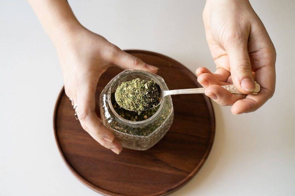 - Смешиваем порошок в пропорции на 1 ст. л. полыни 5 ст. л. шалфея.