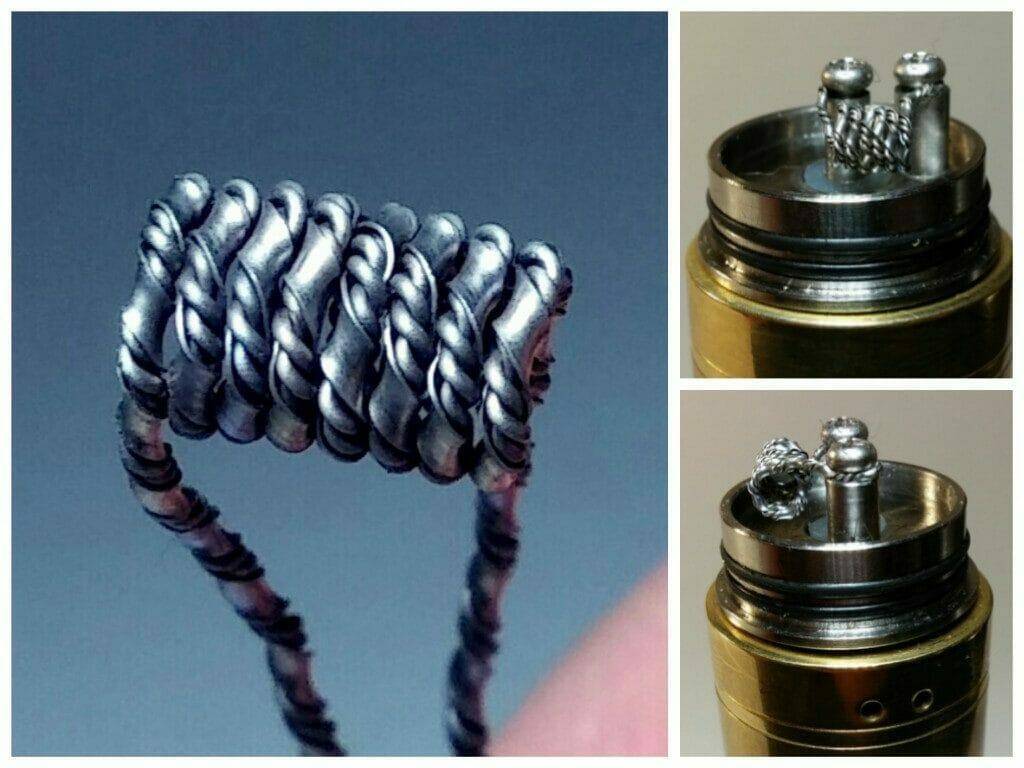 При отсутствии таких заготовок можно сделать намотку Twisted (ее часто называют «косичка»), используя два отрезка проволоки, переплетаемые между собой. Для снижения сопротивления рекомендуется использовать параллельные проволоки или двойной Twisted, устанавливаемые в дрипку по аналогии со стандартными microcoil.
