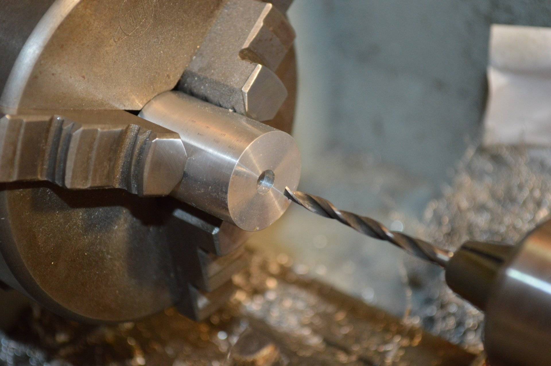 - В головном отделении нужно выполнить резьбу под коннектор 510. Для начала необходимо отцентровать отверстие.