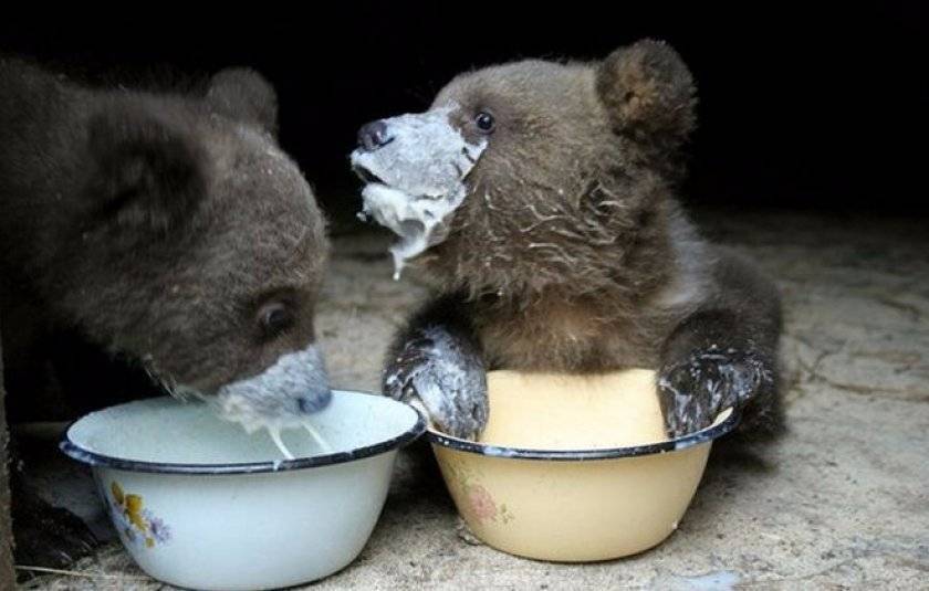 Самых маленьких медвежат необходимо обеспечить молочком. Малыши, которые знают и помнят вкус материнского молока, поначалу могут воротить мордочками и отказываться пить. Но постепенно они привыкнут.