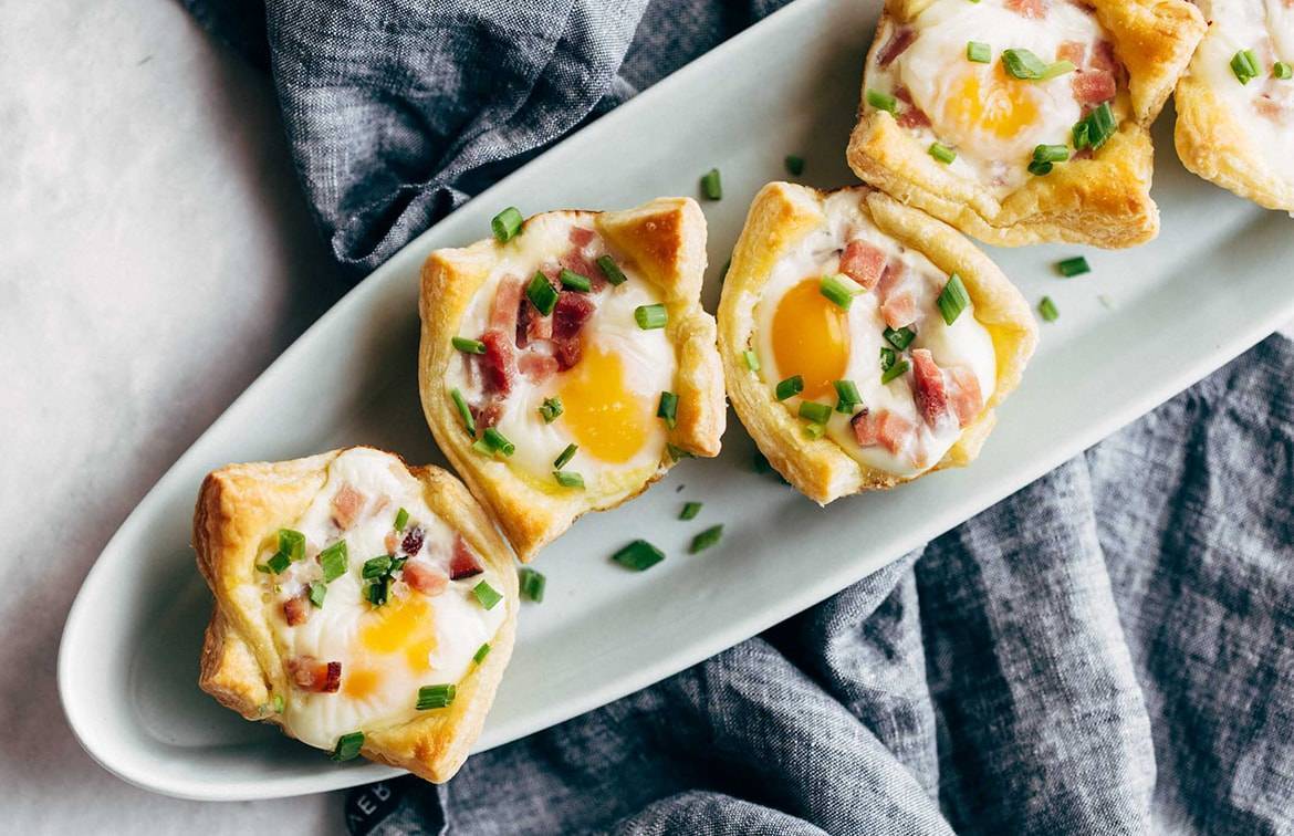 Яйца на слоёном тесте в духовке с ветчиной и сыром