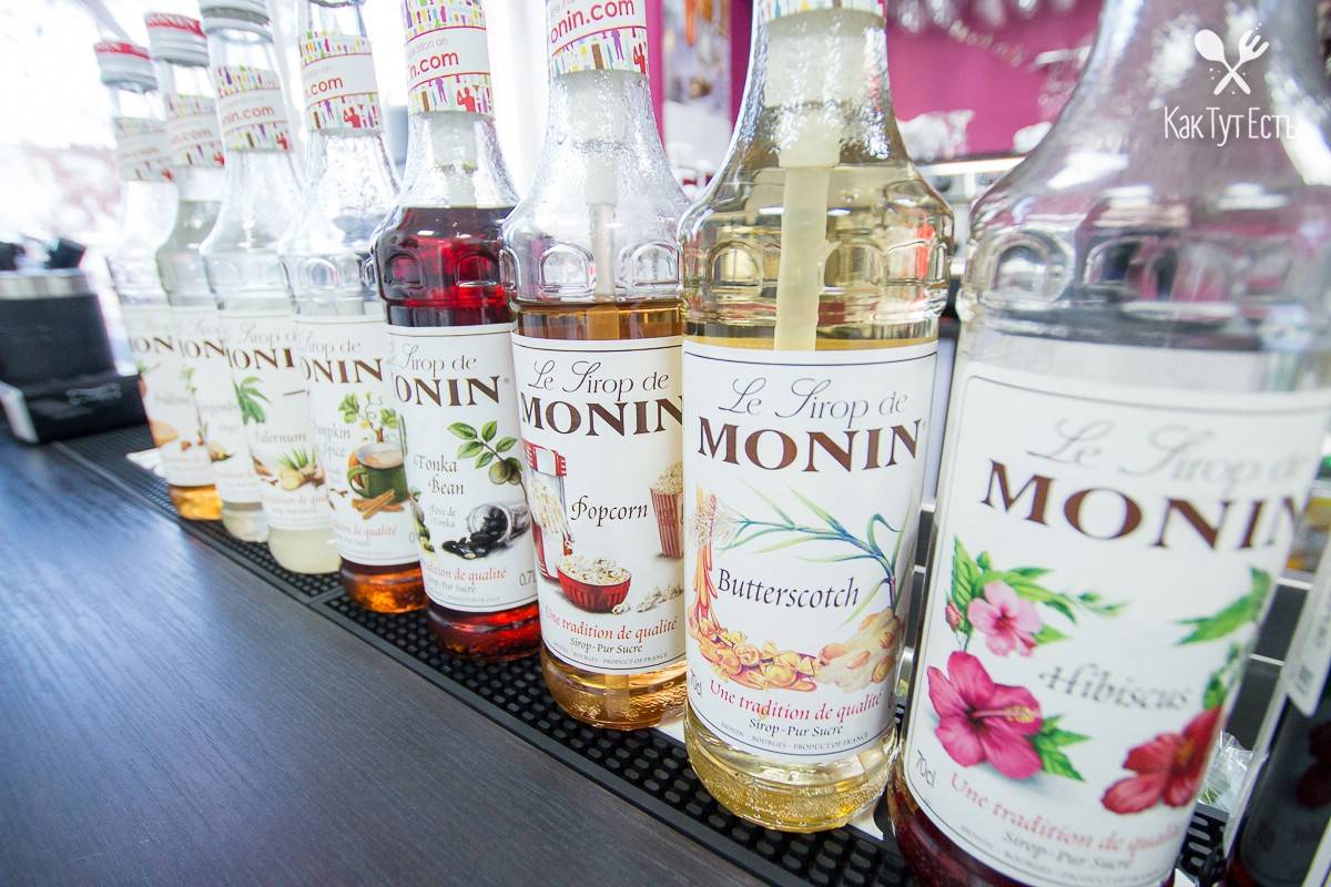 Monin – сироп, который идеально подходит для алкогольных коктейлей. В его составе наблюдаются сахар, концентрированные соки, а также вытяжка из фруктов, ягод, трав и даже цветов. Цвет данного продукта напрямую зависит от использованных натуральных красителей.