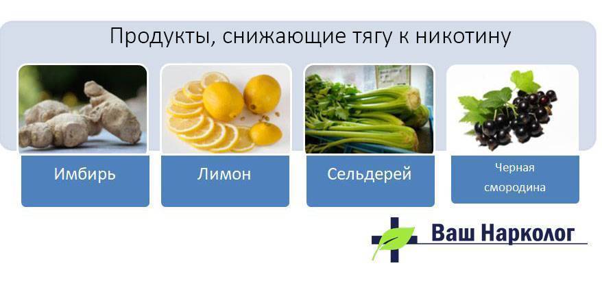 Категорически следует отказаться от кофе, алкоголя, жирных, острых, соленых и копченых продуктов, усиливающих табакозависимость.