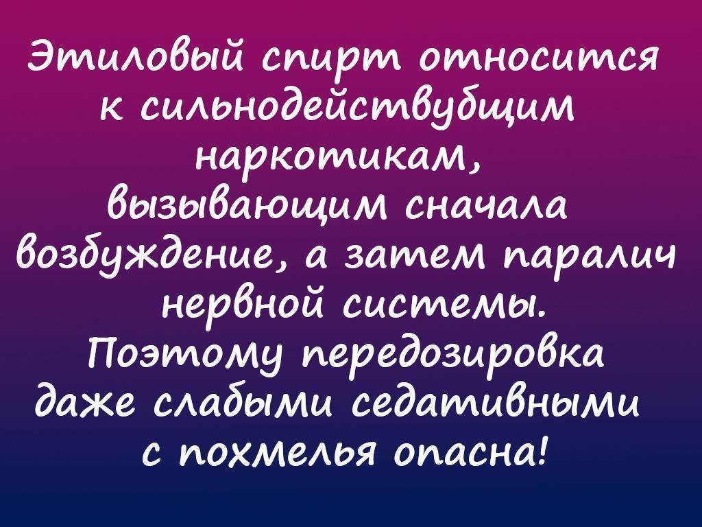 может опасно понизить давление. С2Н5ОН относится к сильнодействующим