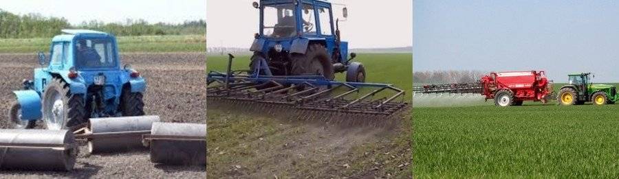 Рисунок 6. Уход за посевами: прикатывание, боронование и удобрение