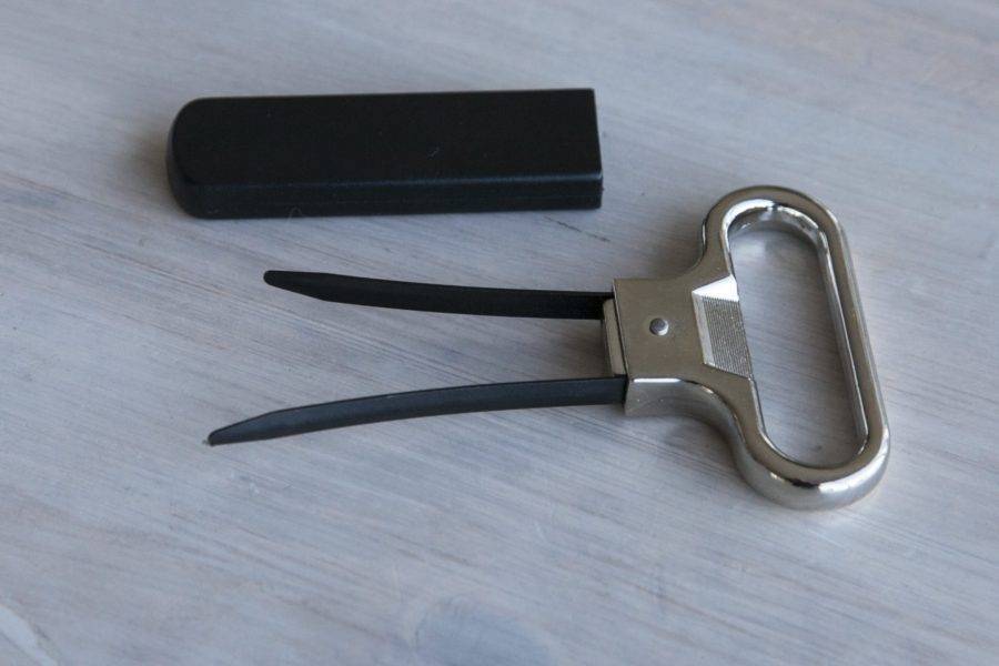 Конструкция цыганского штопора считается одной из самых простых. От рукояти идут два прямо пропорциональных ножа, расстояние между которыми составляет в среднем 18–22 мм. Чтобы открыть вино, вставляем оба конца между пробкой и бутылкой и с покачиваниями пробираемся вглубь горлышка. После того как вы полностью опустили лезвия, круговыми движениями и усилиями на себя вытягиваем пробку.