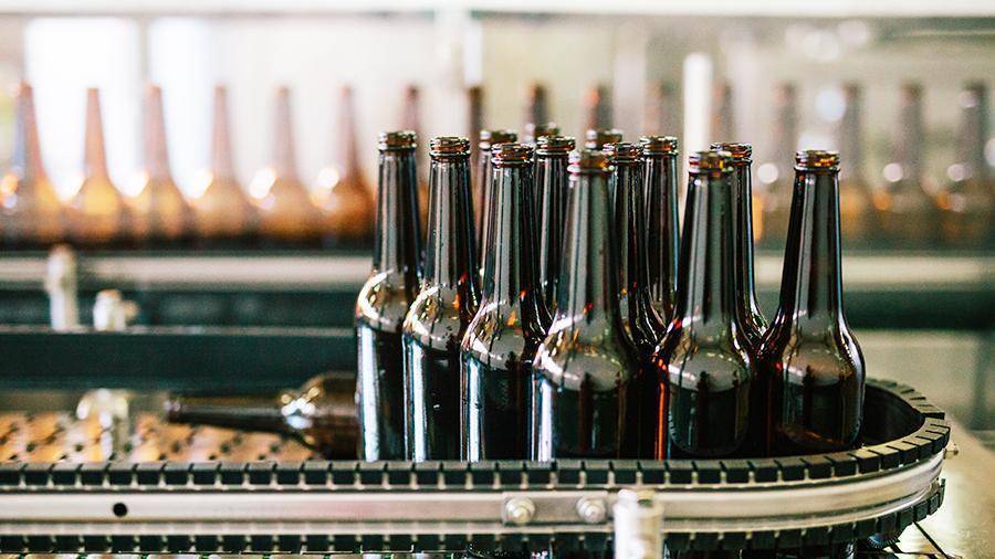 Упаковочное производство на линии розлива в стеклянную бутылку на пивоваренной компании в Ивановской области