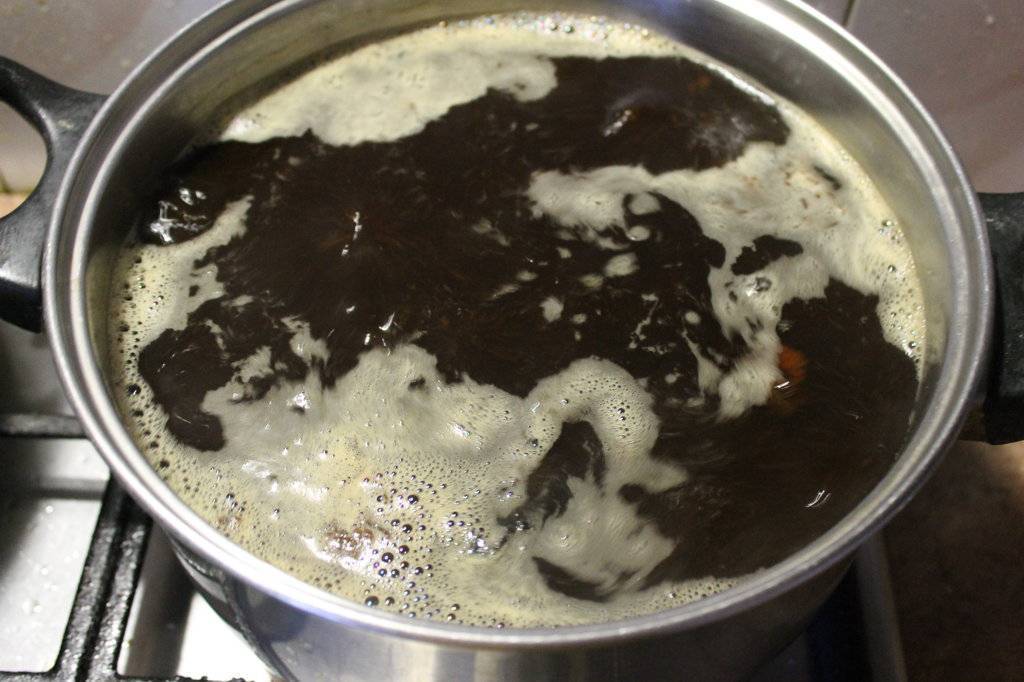 - Когда вода закипит, варим сироп приблизительно полчаса, постоянно снимая образовавшуюся пену. При желании можно добавить 5-8 г лимонной кислоты – она значительно ускорит брожение. Однако всыпайте ее медленно, поскольку она вызывает сильное пенообразование.