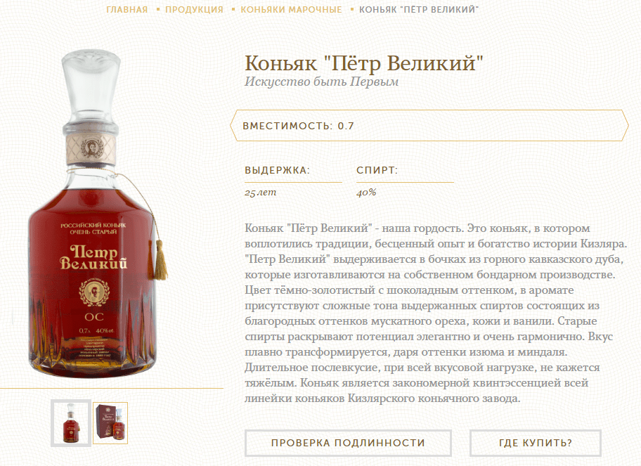 Он станет одним из лучших подарков для мужчины, который ценит традиции и богатство Российской истории. Коньяк «Пётр Великий» обладает выдержкой 25 лет.