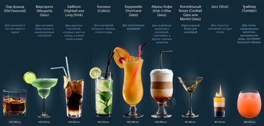 - Long Drinks. Пьют из высоких стаканов объемом 160-300 мл, крепость редко превышает 17 градусов. Примеры: «Лонг Айленд Айс Ти», «Беллини», «Негрони», «Мохито».
