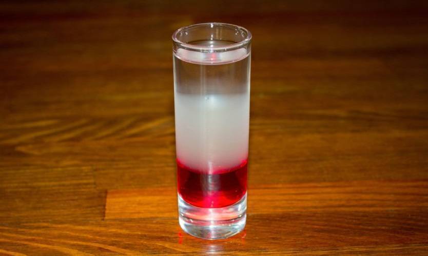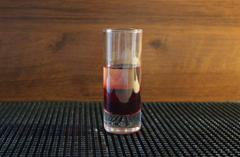 Рецепт: предварительно охладить все ингредиенты. На дно стопки (шота) налить гранатовый сироп, сверху уложить слой свежевыжатого лимонного сока (предварительно процедить через ситечко, чтобы удалить мякоть). Третьим слоем добавить водку. Выпить залпом.
