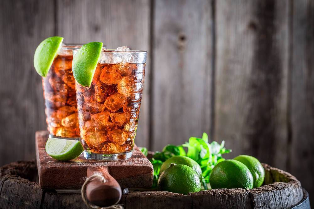 - Залить в хайболл колу из только что открытой тары.