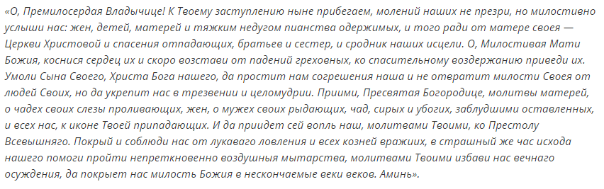 Вот так читаются слова молитвы об избавлении от пьянства: