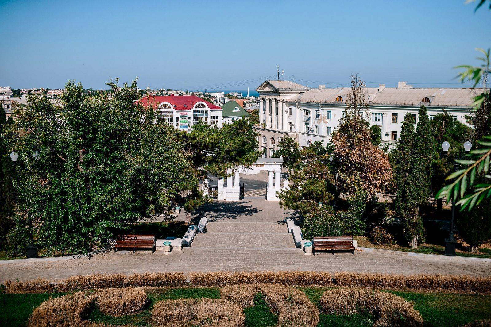 Попасть на курган можно двумя способами, но лучше воспользоваться центральным входом (ворота-пропилеи) и подняться по лестнице. Поднявшись, не забудьте обернуться назад – отсюда открывается прекрасный вид на центральную часть города и Севастопольскую бухту.