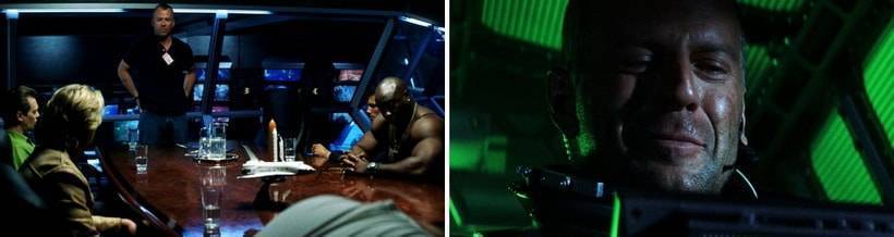 На момент выхода обсуждаемого фильма Армагеддон, режиссер уже успел отличиться и закорекоммендовать себя двумя отличными боевиками, а именно полицейским экшеном «Плохие парни», и одним из лучших боевиков старой закалки в истории – «Скалой». Майкл Бэй после 1995 заслуживал доверия распоряжаться солидными бюджетными средствами и 140 млн. $ для конца 1990-х – внушительная сумма, которую, в прочем, отработали на совесть. Конечно, визуальные огрехи местами сильно бросаются в глаза, даже в одной из первых сцен разрушений Нью-Йорка, но мы вкладываем в понятие зрелищность больше компонентов, чем просто отдельная цифровая покадровка. Поэтому, даже с учетом всех минусов, перед нами один из самых красивых фильмов своего времени.