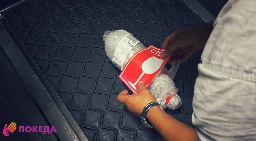 - Бутылку следует поместить в плотный герметичный пакет. Он должен быть целым, без каких-либо повреждений, иначе могут быть наложены штрафные санкции.