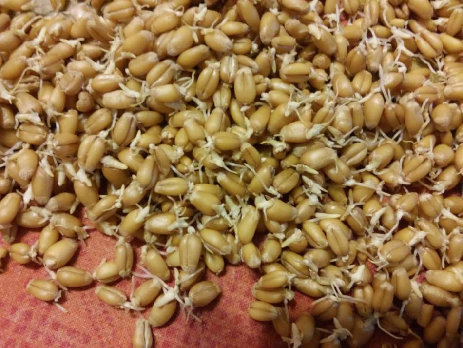 - Проросшее зерно (заранее замочите его) просушите на сковороде, солнце или в духовке (на низких температурах).