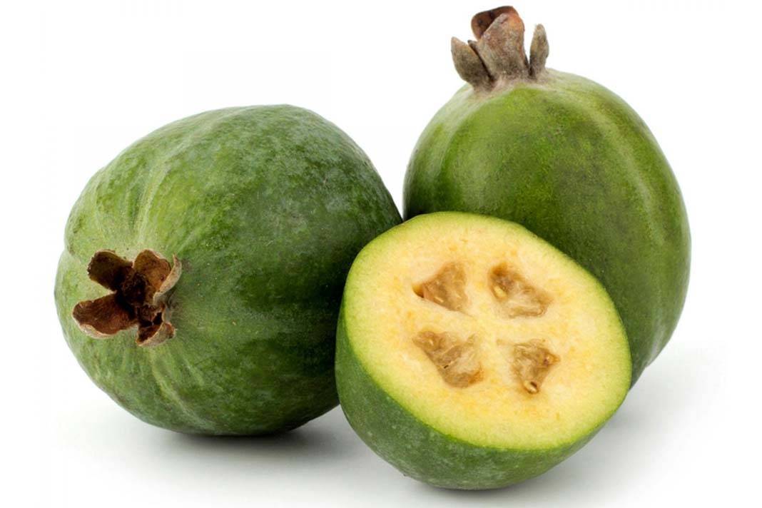 Фейхоа – экзотический фрукт, вкус которого похож на киви, ананасы и клубнику. Используется фрукт для выпечки, десертов и настоек. Фейхоа отлично сочетается с клюквой и клубникой.