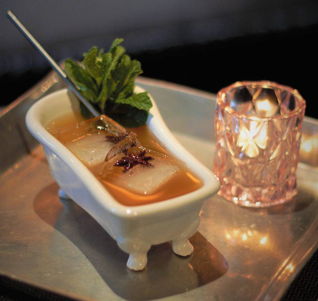 «Джин из ванной», а именно так переводится название, получил распространение в США после введения Сухого Закона. Тогда производство всех алкогольных напитков было упрощено до предела. Например, бутлегеры просто смешивали в ванных (или других открытых емкостях) спирт и травяные настойки, а полученный напиток называли джином. В наши дни этот тип был одобрен специалистами. Рецепт настойки опубликовал даже популярный британский сайт Craft Gin Club.