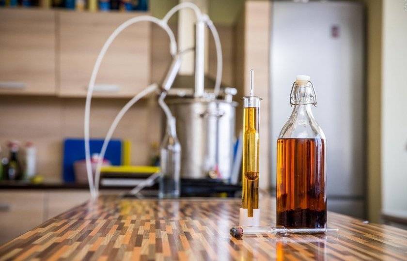 - Собирается « тело» напитка. Его крепость контролируется спиртометром. Он должен быть 40 градусов. Если крепость напитка меньше данного показателя, то следующий спирт также собирается в отдельную емкость. Это « хвост» напитка. Он очень мутный, имеет неприятный запах и также его пить не рекомендуется.