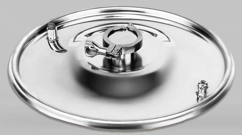 Крышка оборудована ниппелем под электронный термометр (по терминологии МЗПО – «гермоводом»), кламповым соединением для крепления колонны и аварийным клапаном сброса давления от скороварки. Хвалить в этой комплектации можно только кламп на 2”, а остальное, как уже неоднократно обсуждалось в других обзорах, просто архаизм.