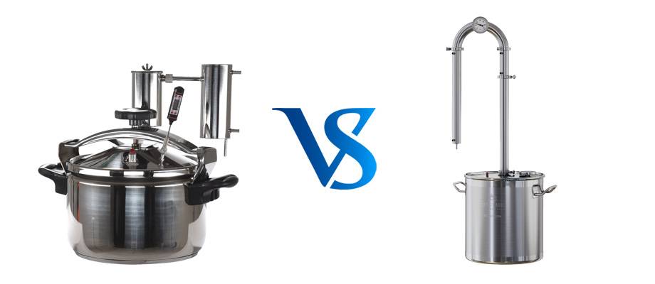 Получить спирт такого качества и степени очистки на самогонном аппарате невозможно. А вот ректификационная колонка может работать в режиме обычного самогонного аппарата. Получается что она лучше, но при этом и стоимость отличается.