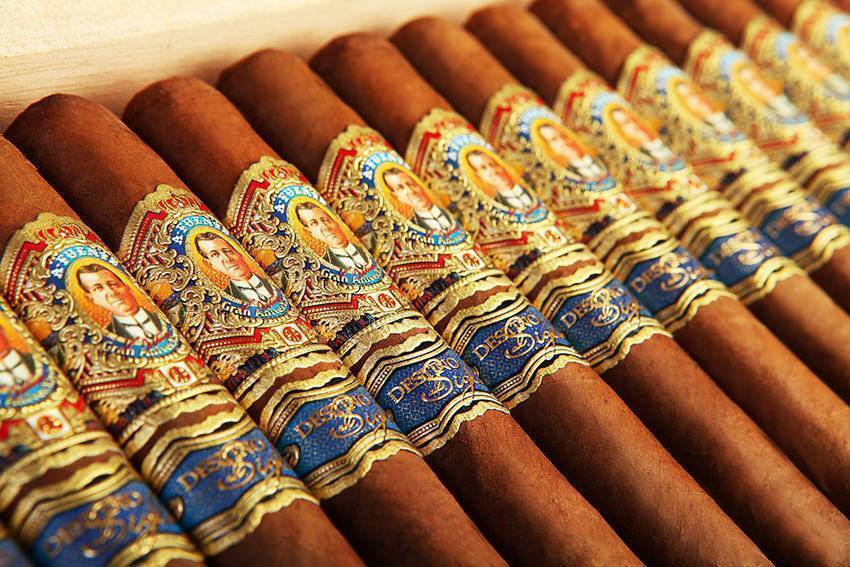 Сигары длиной 21 см. Дым густой, ощущаются элегантные оттенки земли, дополненные вкусом сладких специй. Костные сундуки, в которые помещены сигары, вырезаны вручную. Цена достигает $1150 (74 800 руб.).