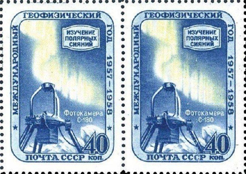 Международной научной общественностью 1958 г. был объявлен годом геофизики. Почта изготовила марки с соответствующим изображением, номиналом 40 коп. В настоящее время некоторые из них продают по 14,5 тыс. долларов.