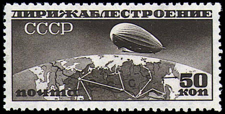 В 1931 г. начался выпуск марок, посвященный цеппелинам в Советском Союзе. На них нарисован огромный летательный аппарат на фоне планеты Земля.