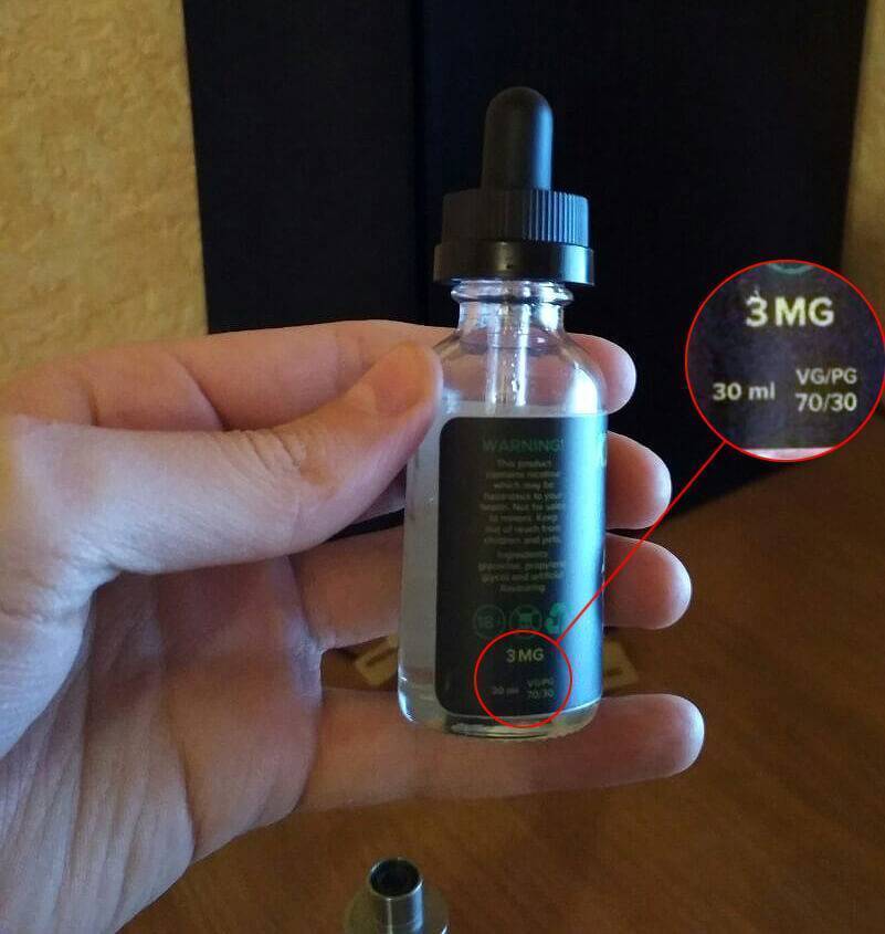За нормальный уровень никотина возьмем единицы измерения готовых жидкостей, где более менее рассчитана никотиновая доза. На готовых жидкостях мы можем видеть надписи 1мг, 1,5мг или 3мг (иногда пишут: 1%, 1,5%, 3%).