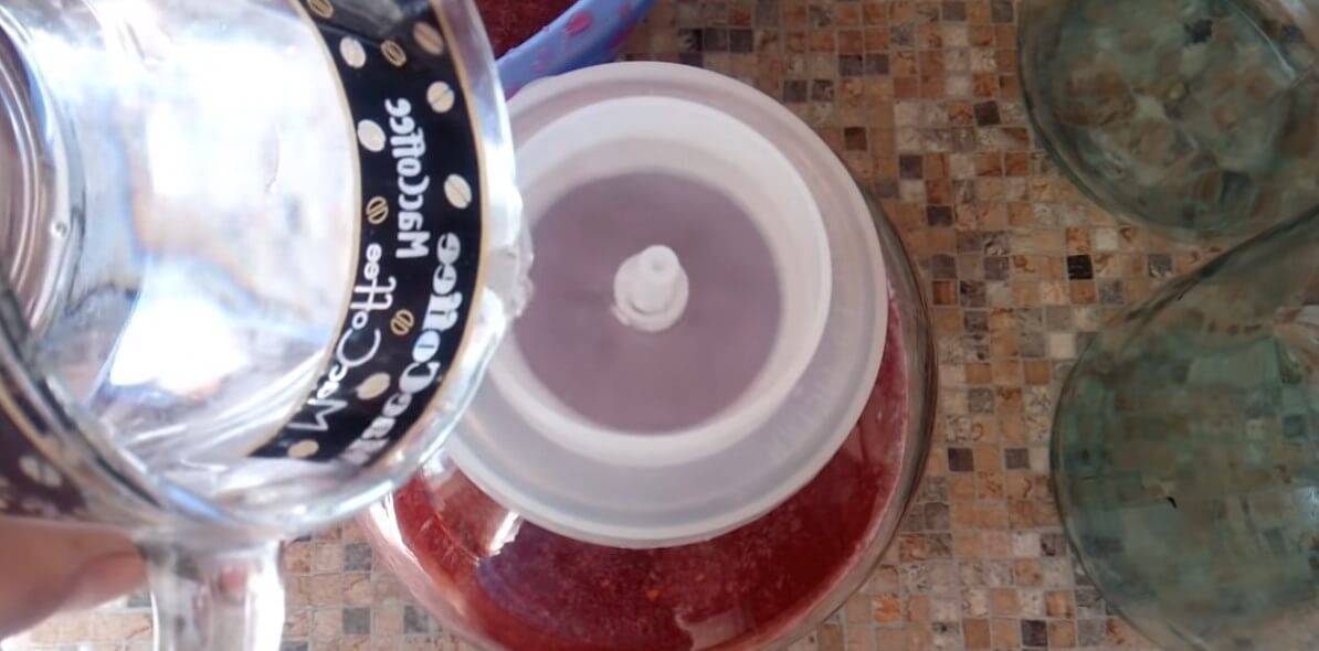 - Вылейте варенье в большую банку, добавьте воду, хорошо размешайте