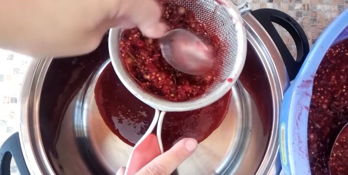 Когда масса в кастрюле начнет «пузыриться», издавать слегка кисловатый запах, нужно провести фильтрование смеси. Мезга отжимается