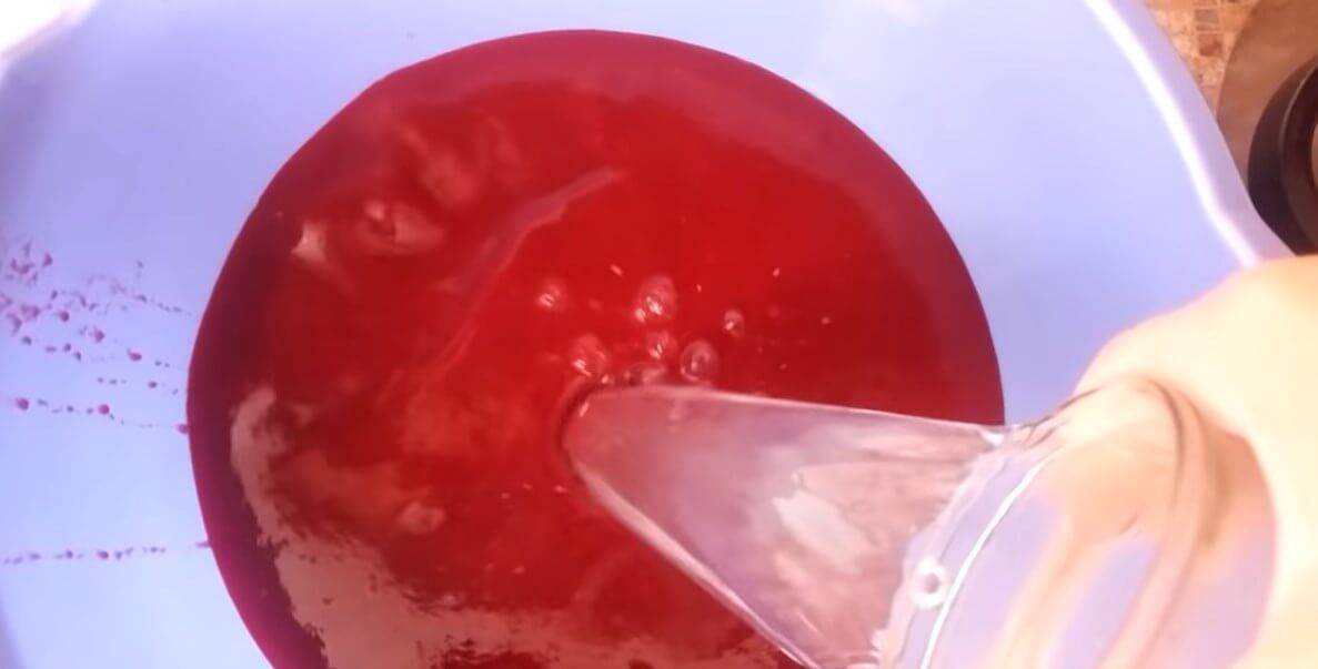 Этот сок кислый и руки может немного жечь, поэтому лучше это делать в перчатках.