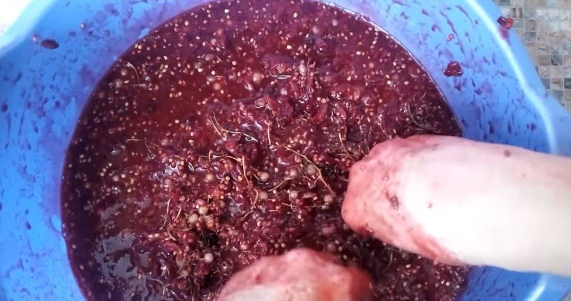 - Тщательно раздавите сырье так, чтобы каждая ягодка была расплющена. Для этого подойдут рука, скалка, бленлер и любой другой агрегат похожего действия