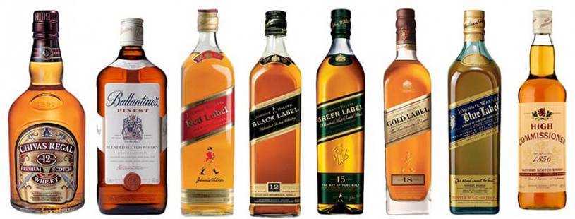 - Blend – купажированное виски, комбинация разных сортов солодового и зернового спиртов в различных пропорциях.