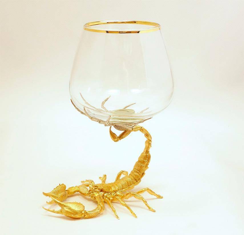 Долго думал, какой бокал поместить на первое место, выбирая между разнообразием бокалов на декоративной ножке. Каких только ювелирных работ я не встретил! И все же лидером моего топа стал бокал-скорпион. Не побоялись бы из такого бокала пить?