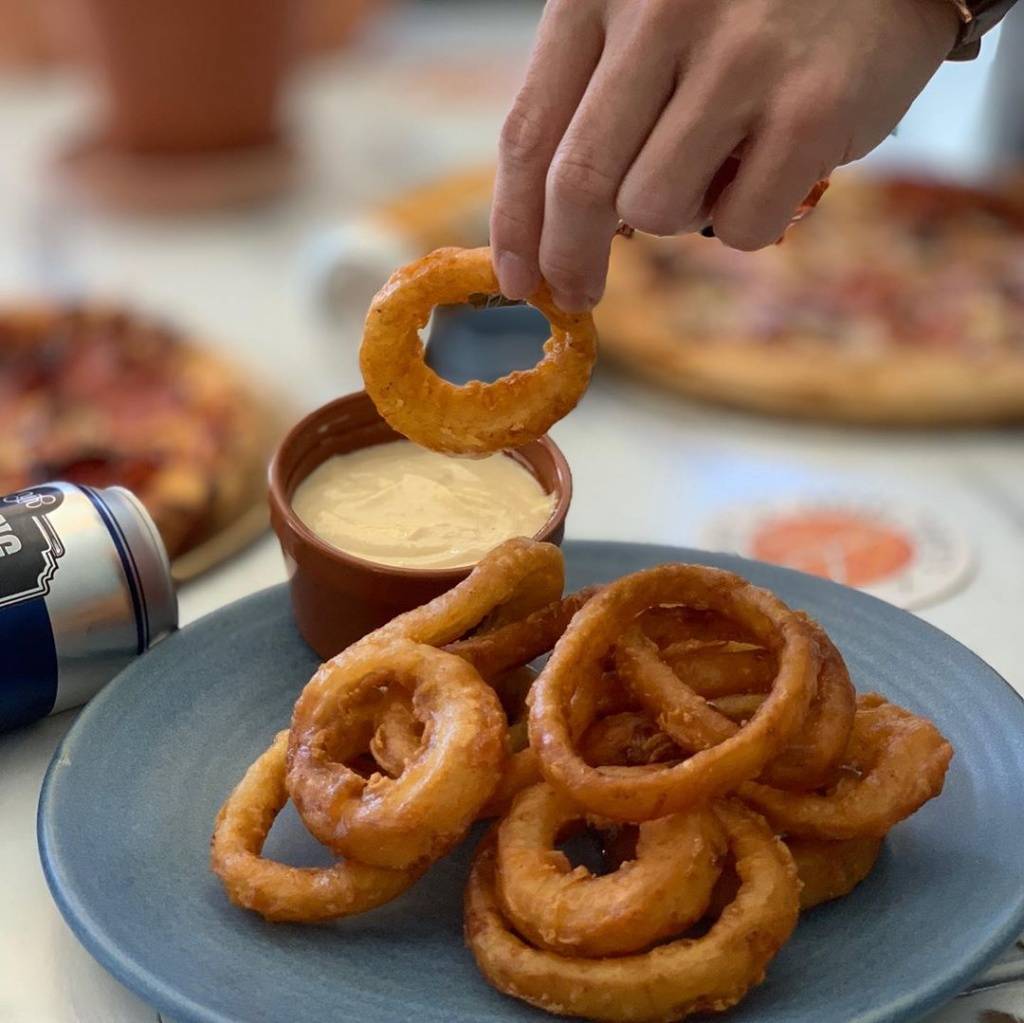 Луковые кольца отлично сочетаются со сметано-чесночным соусом.