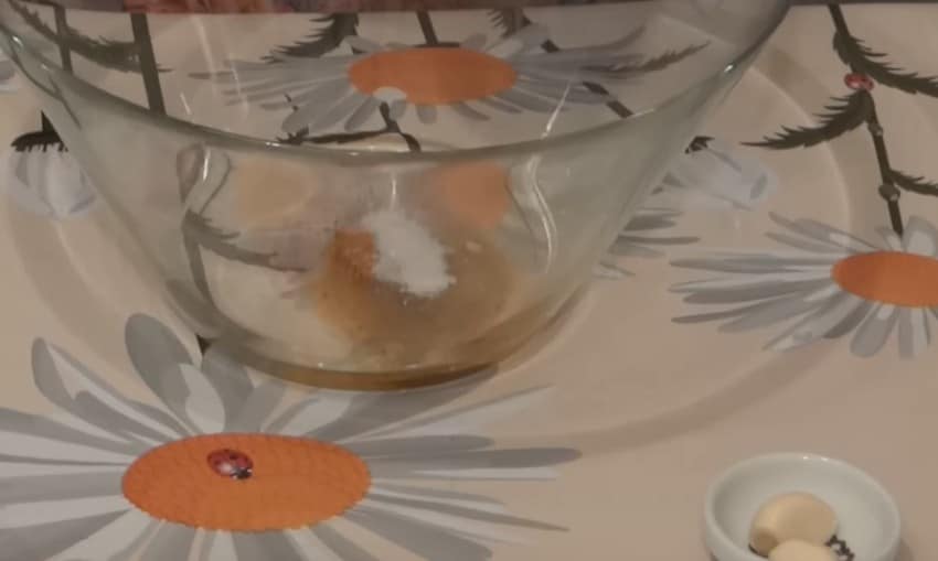 - в миску с хлебом добавляется соль и специи, аккуратно перемешиваем состав рукой;