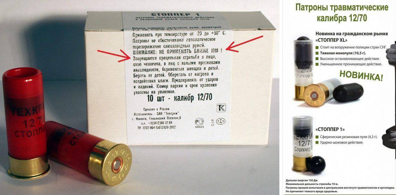 | ООО «Техкрим» | 12 | 140 | 79,32 Дж | Каждая пуля содержит три резиновых шарика. Запрещено применение ближе, чем с 10 м. |
